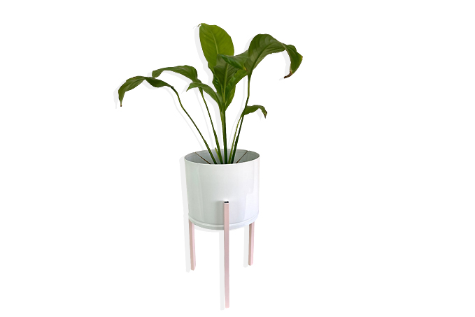 Maceta alta redonda, con pie de hierro, viene en dos combinaciones de colores a elección, la maceta es de 20 centímetros de diámetro